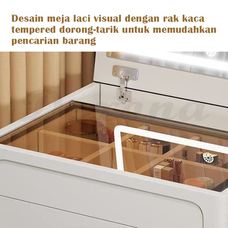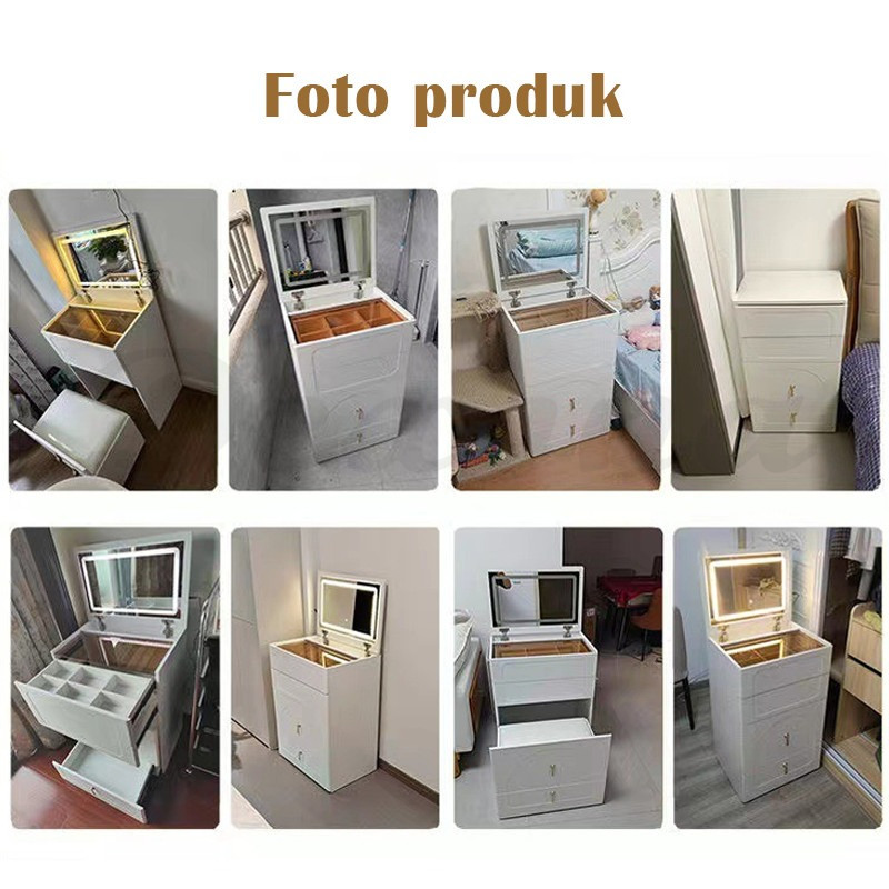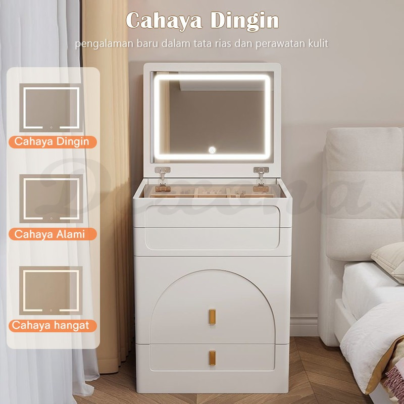 Meja Rias 3 Warna Led Cermin Lemari Susun Minimalis Aesthetic Meja Rias Sliding Multi Laci Dapat Dilipat Apartemen Kecil