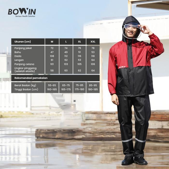 BOWIN - JAS HUJAN PREMIUM REFLEKTIF DENGAN FACE SHIELD & ANTI REMBES WATERPROOF - M, MERAH MAROON