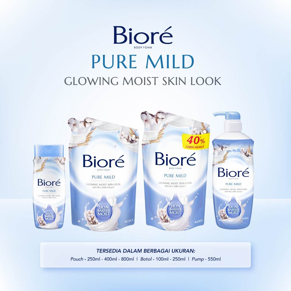 Biore Beauty Sabun Mandi Cair Pelembab Kulit Pure Mild Ekstrak Yoghurt Pump 550 Ml + Refill 400 Ml - Sabun Cair Body Was