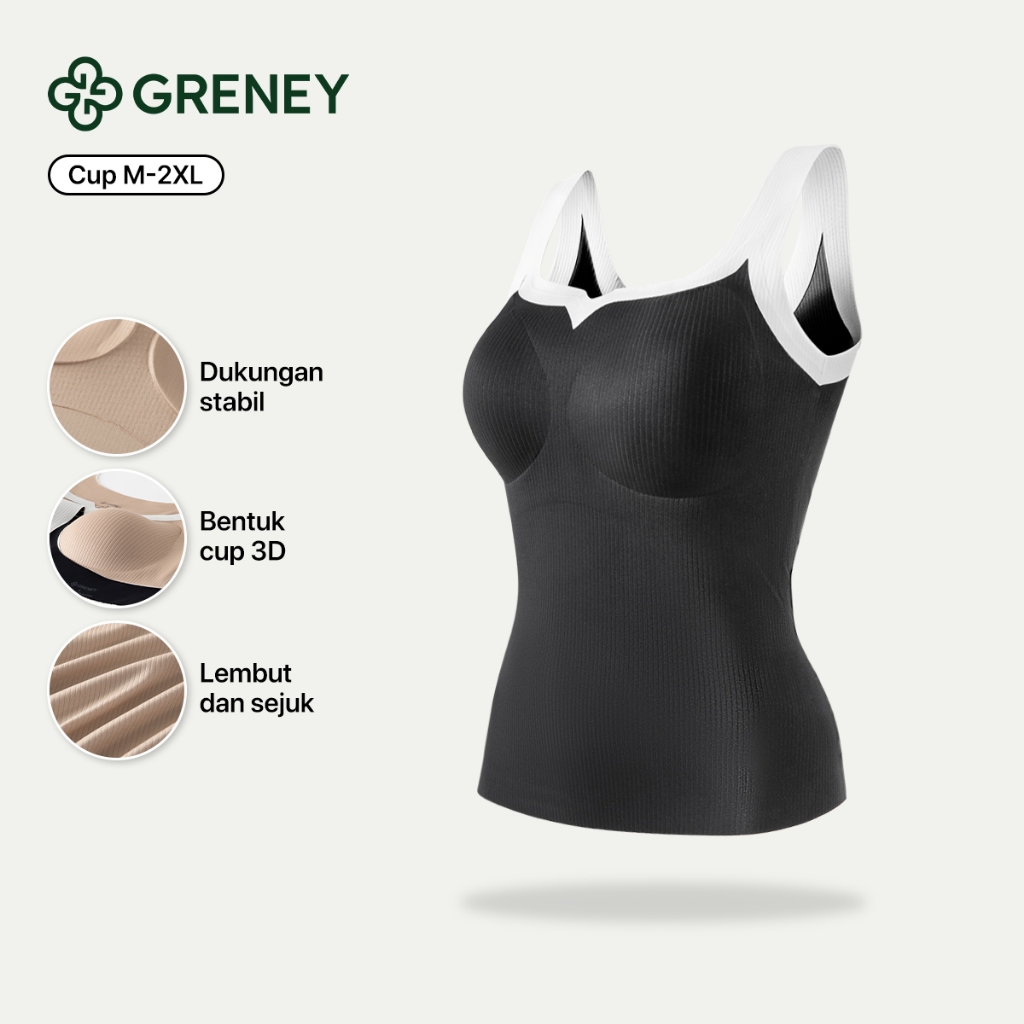Greney- Bra Top Wanita Rompi Tank top Kamelia Cup Tipis Tetesan Air Penyangga W Jelly Strip Cup semi-fix 3D Dukungan Dou