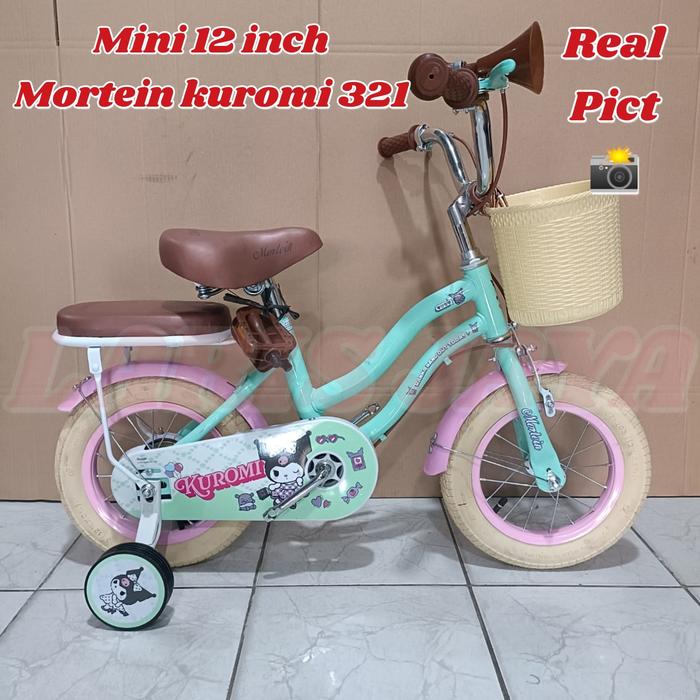 SEPEDA ANAK PEREMPUAN MINI 12 INCH MORTEIN KUROMI MN.321 KERANJANG TERBARU - HIJAU