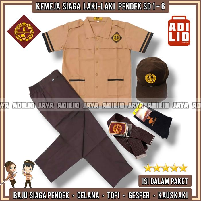 SETELAN SUPER LENGKAP PRAMUKA SIAGA LENGAN PENDEK SD ANAK LAKI - LAKI CELAN COKELAT PANJANG - KELAS 1, PKT LENGKAP