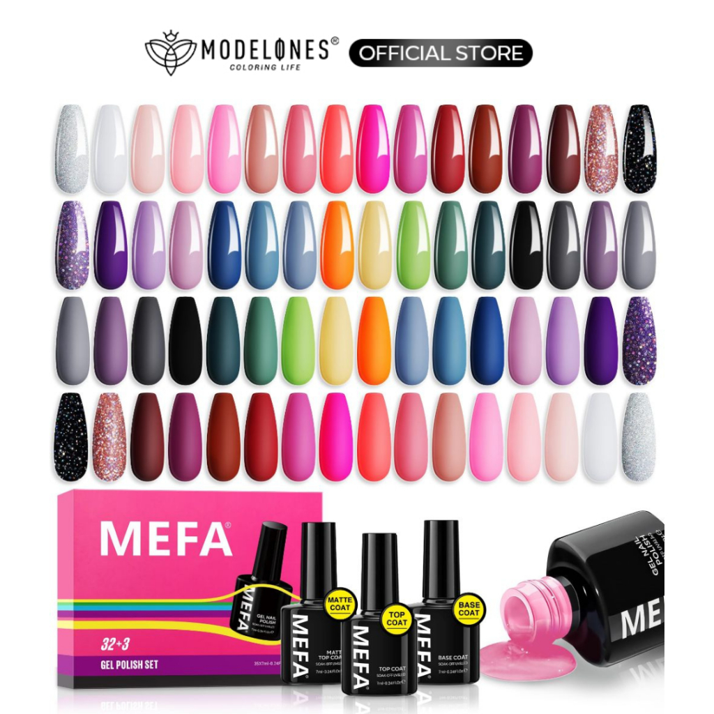 MODELONES 35 Pcs Gel Nail Polish Set, 32 Colors All Seasons Collection Gel Nail Polish Kit with Base Coat No Wipe Glossy