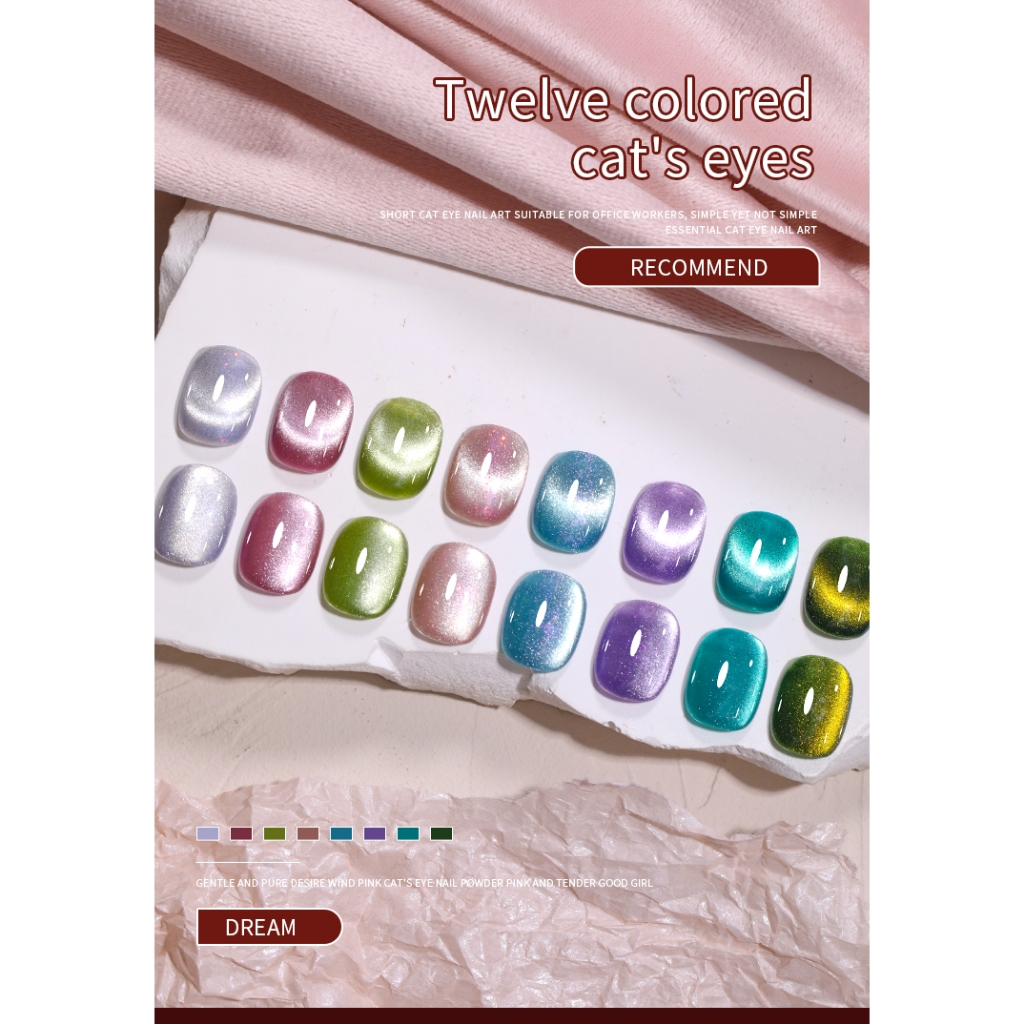 15ml 12 Warna Set Cat Kuku Gel Bubuk Berlian Kristal Seni Kuku Mata Kucing Kit Kuku untuk Manikur Gel Salon dan Seni Kuk