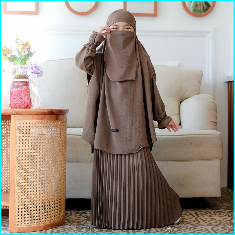Salvina Kids - Gamis Anak Plisket French Khimar Free Cadar Usia 4 Sampai 15 Tahun Malika Set