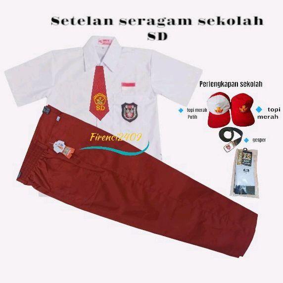 SETELAN SERAGAM MERAH PUTIH SEKOLAH SD ANAK LAKI-LAKI USIA 6-13 TAHUN KELAS 1-6 SD SET BAJU PENDEK SD CELANA PANJANG MERAH FASHION - BAJU + CELANA, 6 TH