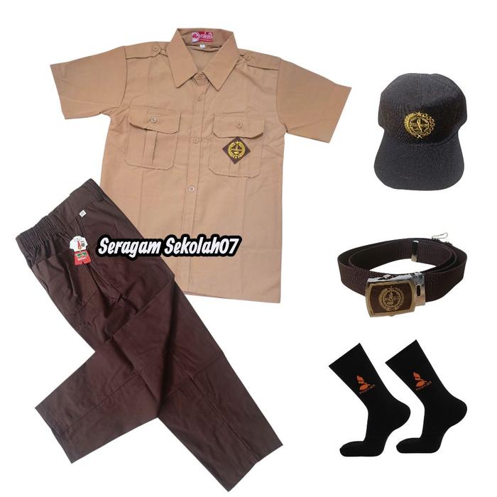 SERAGAM PRAMUKA SEKOLAH SD LAKI-LAKI SETELAN SUPER LENGKAP BAJU PENDEK CELANA PANJANG - 1 SET LENGKAP BPD.CPJ, 6 TAHUN