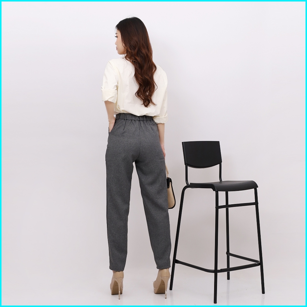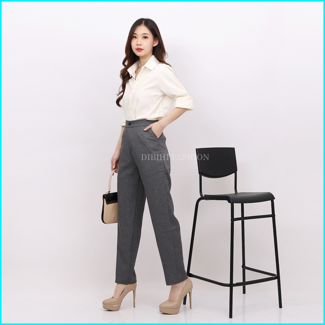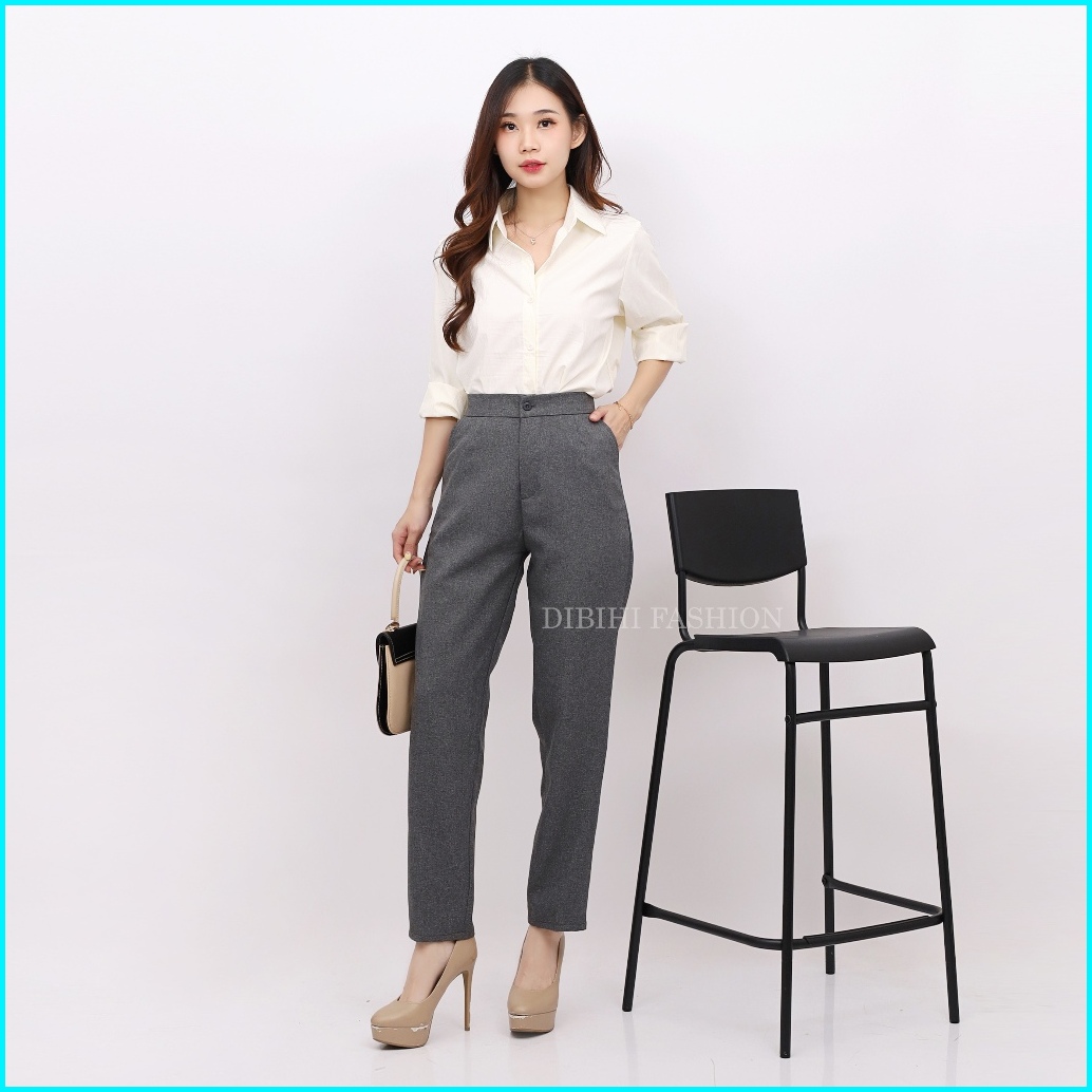 Dibihi Celana Kerja Formal Kantor Wanita Pinggang Highwaist Karet Sisi Belakang Bahan Import