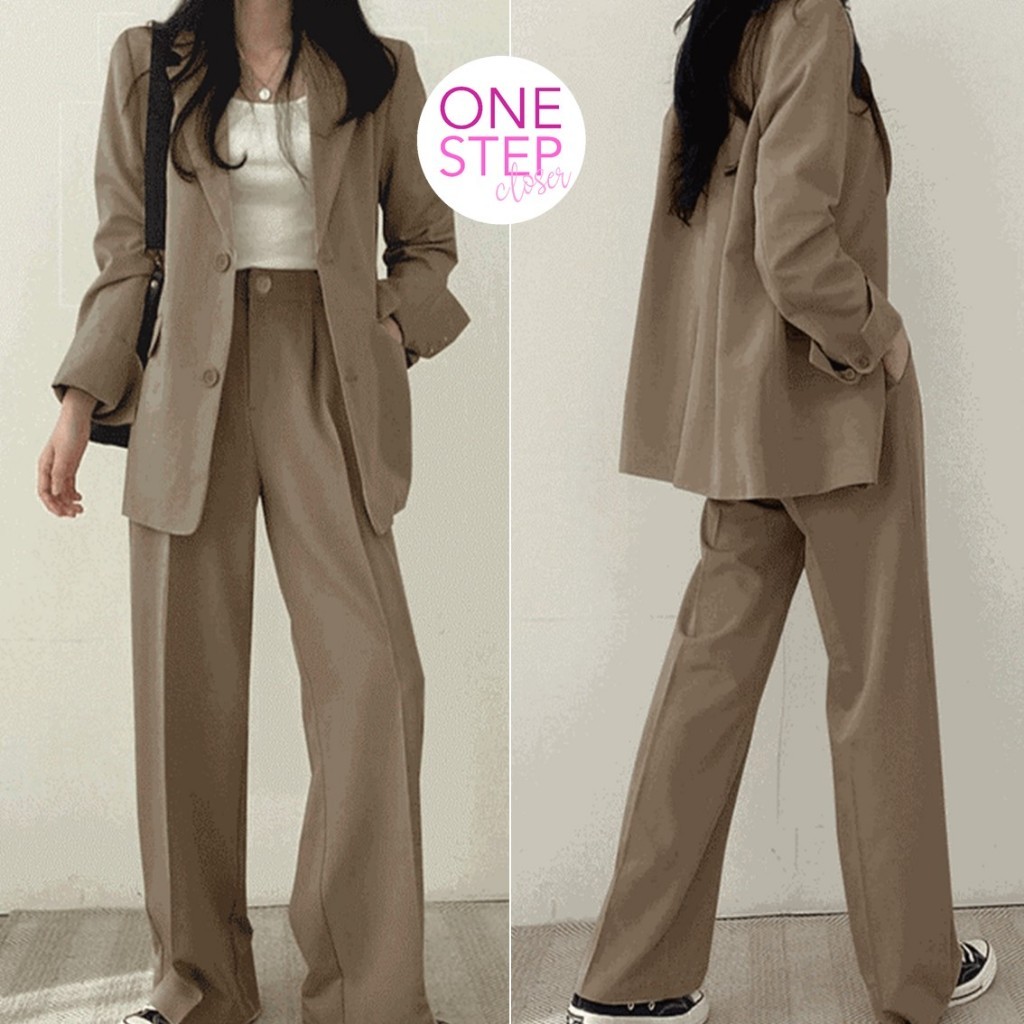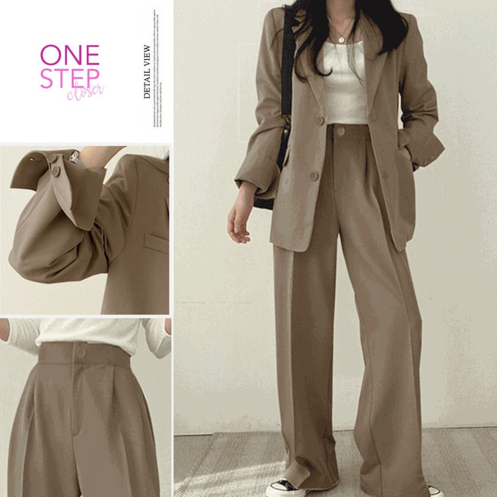 Blazer Celana Set Coklat Kasual Setelan Wanita Baju Kerja Office Premium Korean Style Kekinian S2-009-1006