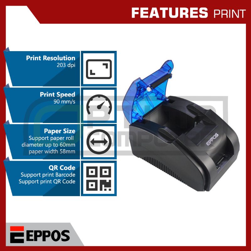 Printer Thermal Bluetooth Eppos Ep-58Plus Kompatibel Multi Os