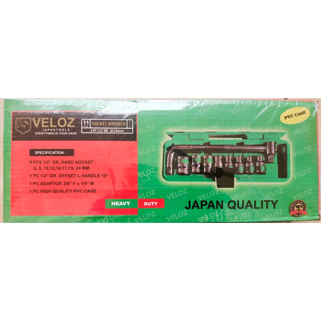 Veloz Kunci Sok Set 11 Pcs 8-24Mm 1/2" 6Pt Shock Shocket Cr-V