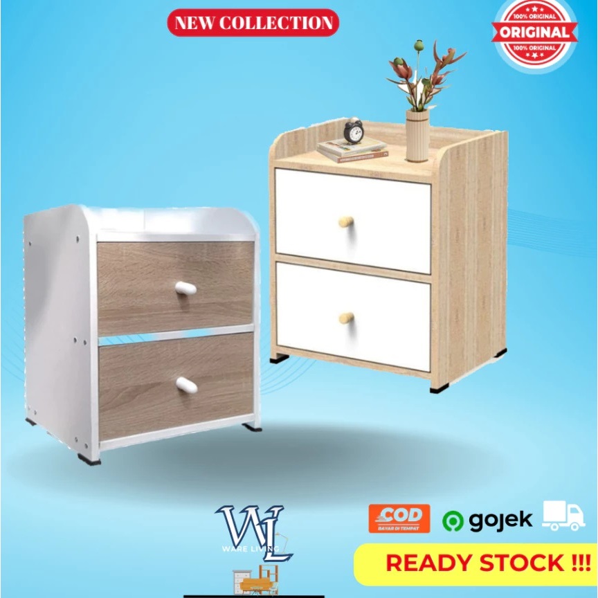 Kingdom Tingkat Kayu Nakas Laci Full White Laci Samping Tempat Tidur