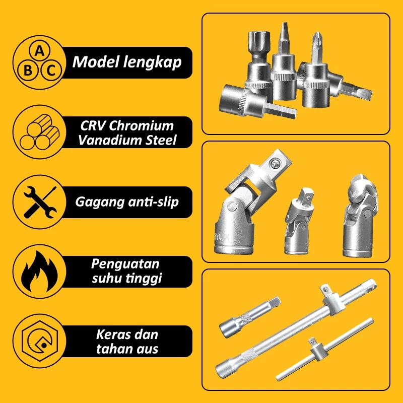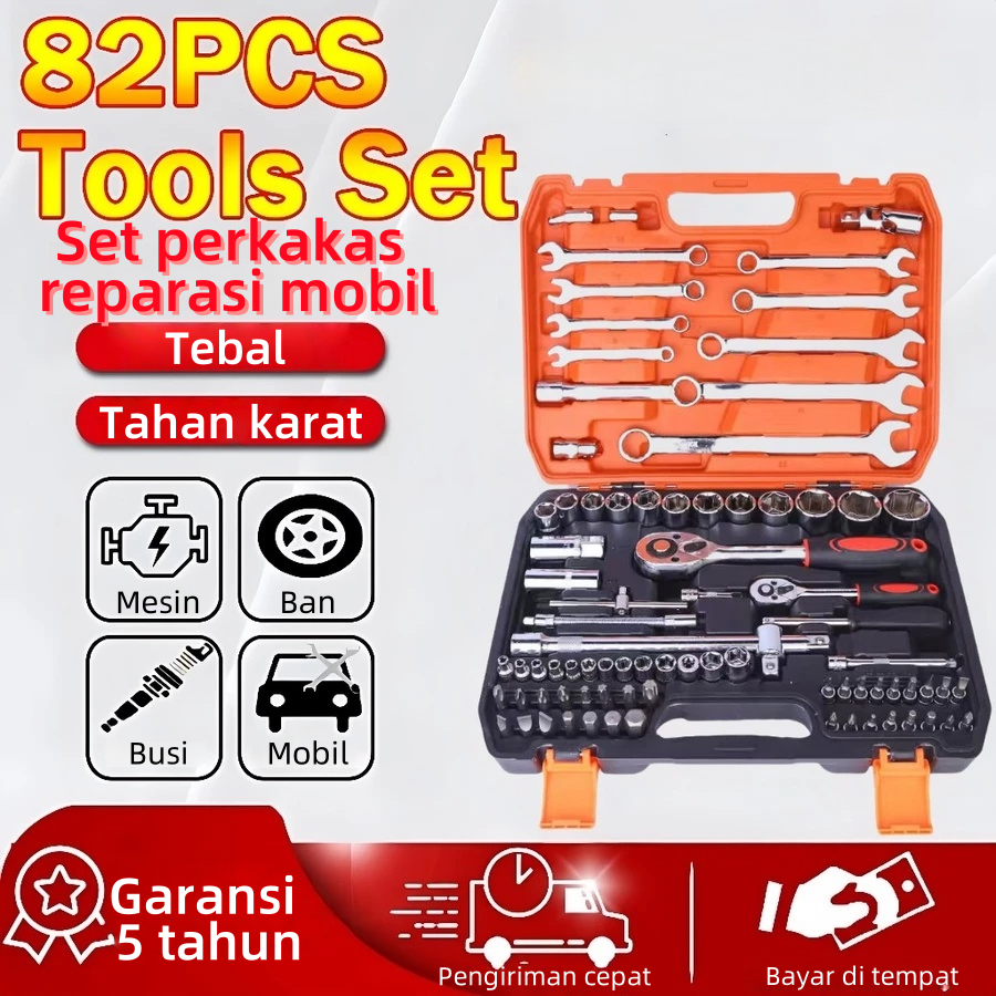 Tool Kit Kunci Shock Perbaikan Mobil Repair 82/61/94 Pcs Socket Wrench Pas 53Pcs Sok Shock Motor Lengkap Socket Tool Kit