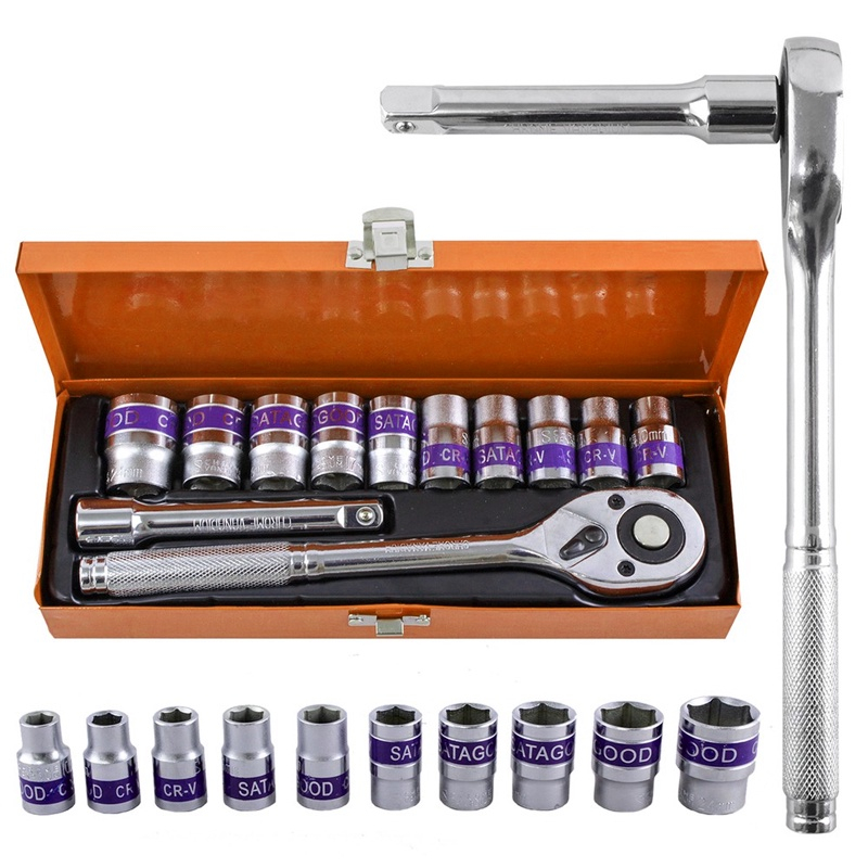 Reaim Obeng Kunci Socket 1/2Inch(12.5Mm) Set 12 Pcs Socket 8 - 24Mm Ratchet Spanner Mata Socket Impact Set Sok Panjang K