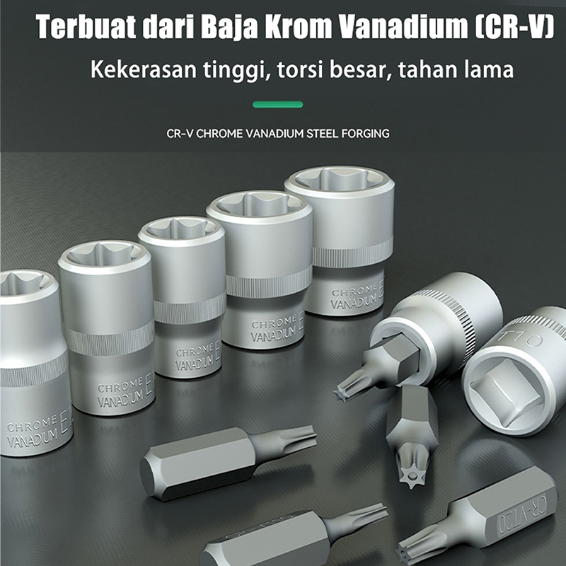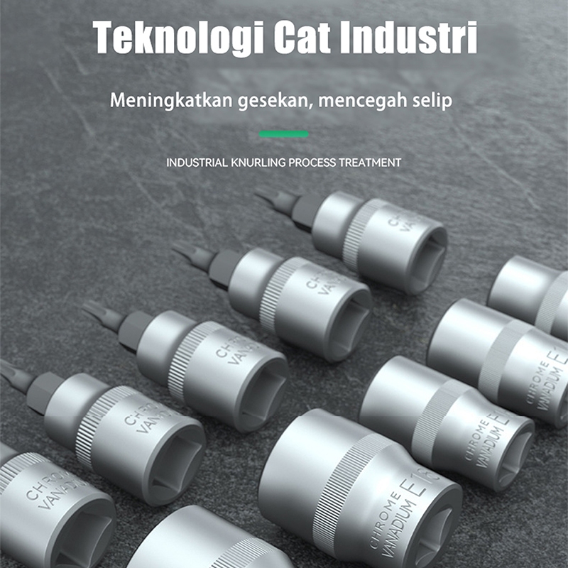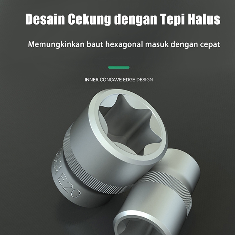 34Pcs Socket Set E-Type - Kunci Soket Hex / Spline Untuk Bengkel Mobil, Perkakas Servis Profesional