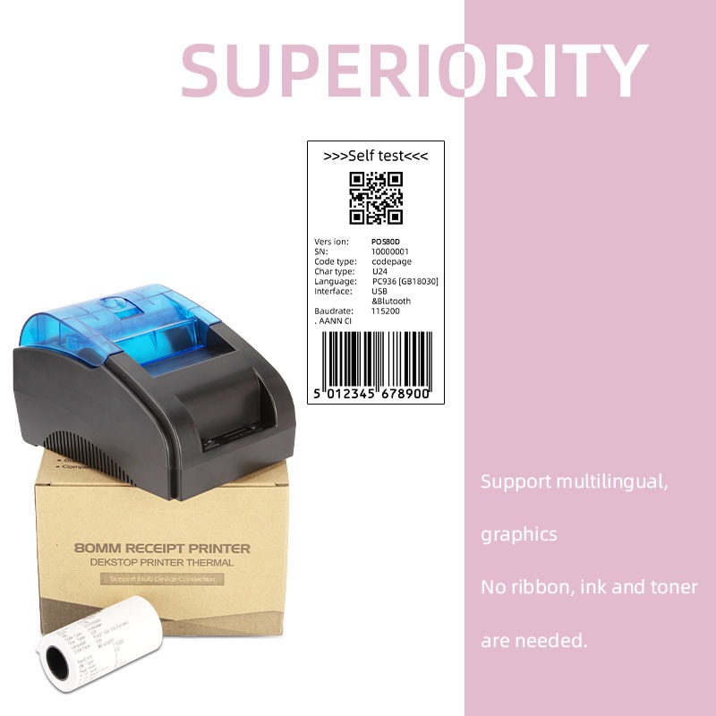Printer Bluetooth Mini Kasir Thermal 80Mm Usb + Bluetooth (Gratis Kertas 3 Roll)
