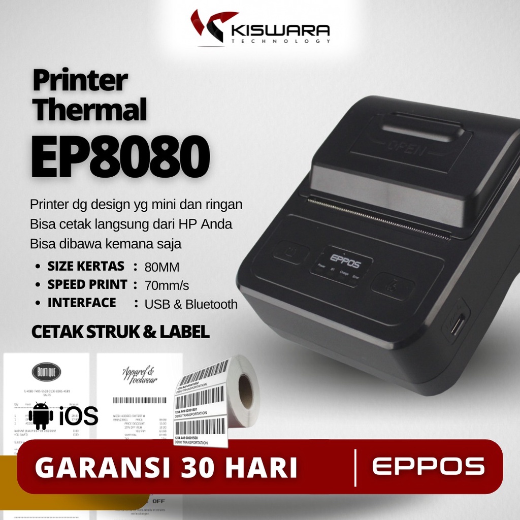 Mini Printer Bluetooth Eppos 80Mm Thermal Portabel