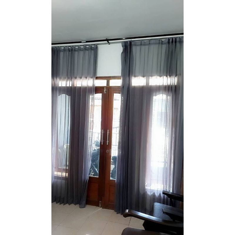 Vitrase gorden premium warna abu model cantelan kawat s lebar 100cm