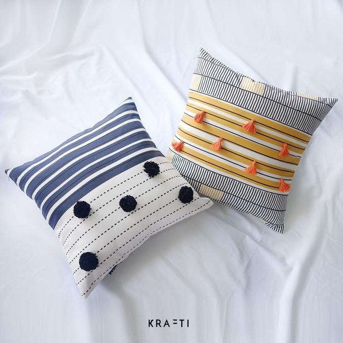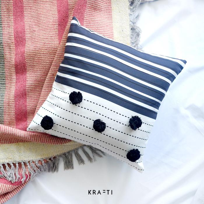 BANTAL BLACK POMS STRIPES MOTIF SOFA 40X40 SARUNG DAN BANTAL - SARUNG SAJA