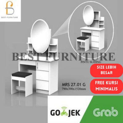 Meja Rias Putih Lampu Led Meja Rias Kaca Sliding Kaca Minimalis Free Kursi