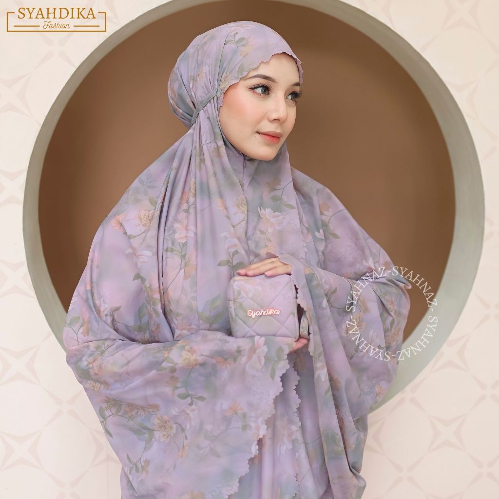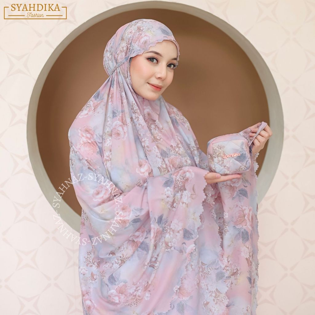 Syahdika - Mukena Travel Mini Parasut Premium Korea 2in1 Motif Rose Laser Cut Free Sejadah