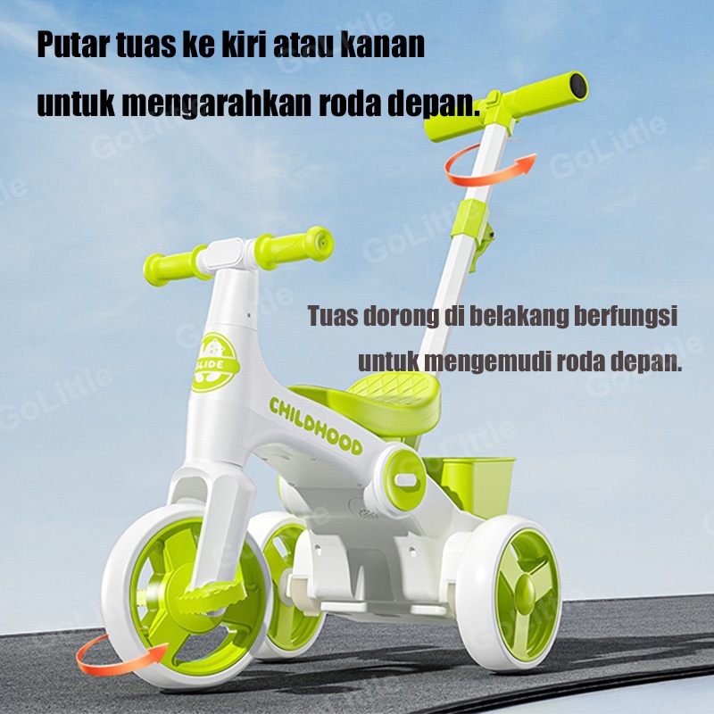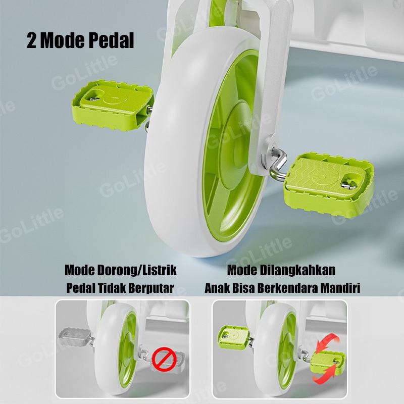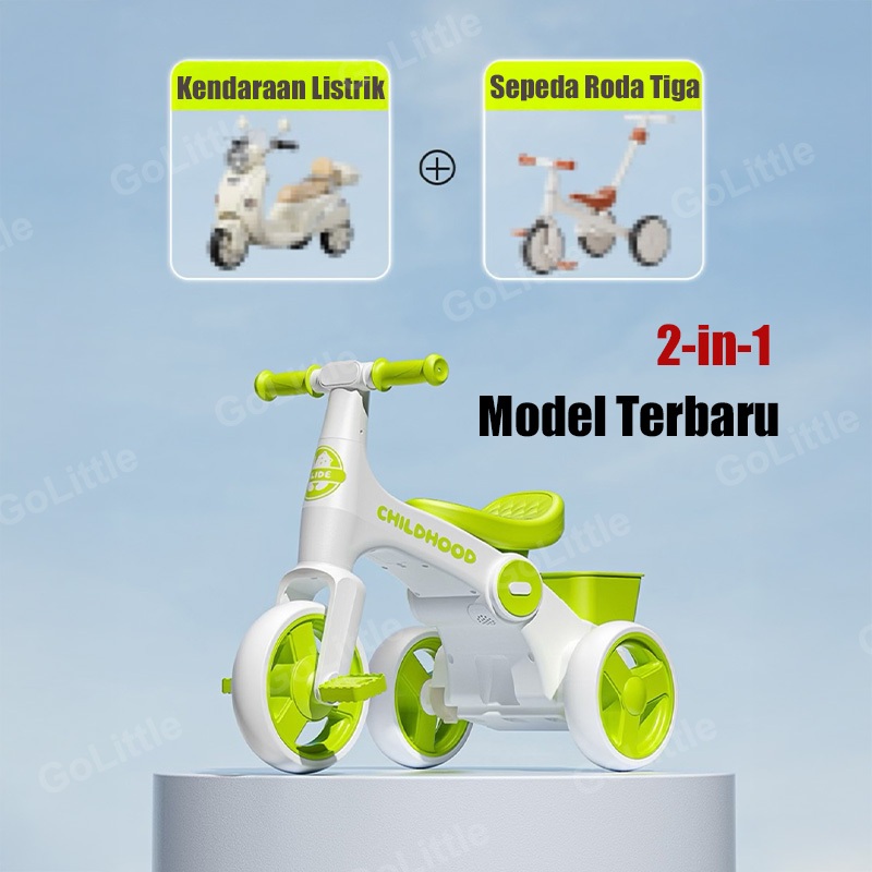 Mobil Listrik Anak 2 in 1 & Sepeda Roda Tiga Elektrik Dengan Musik Bluetooth, Keranjang Belakang & Tuas Kemudi yang Dapa