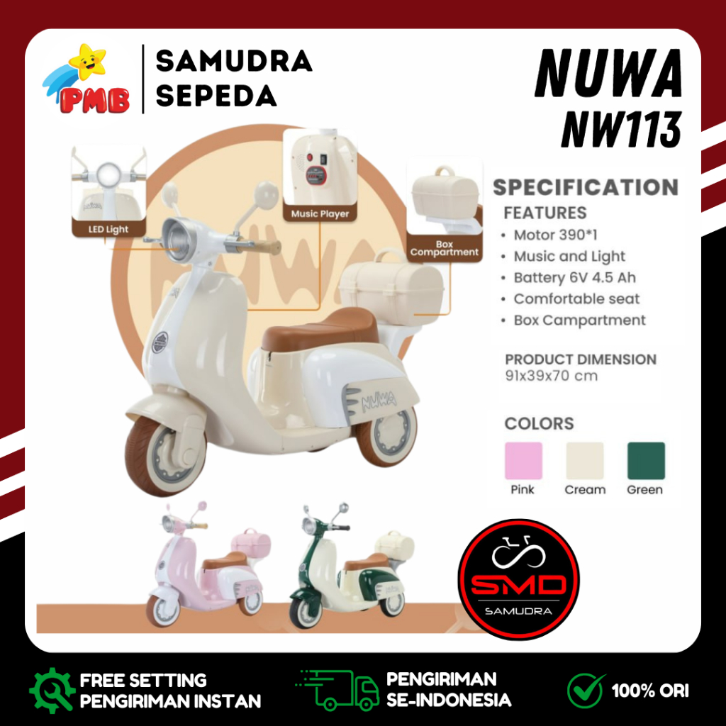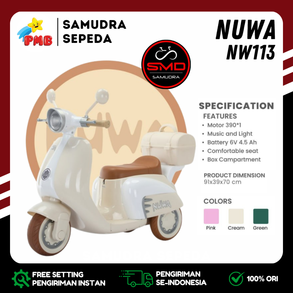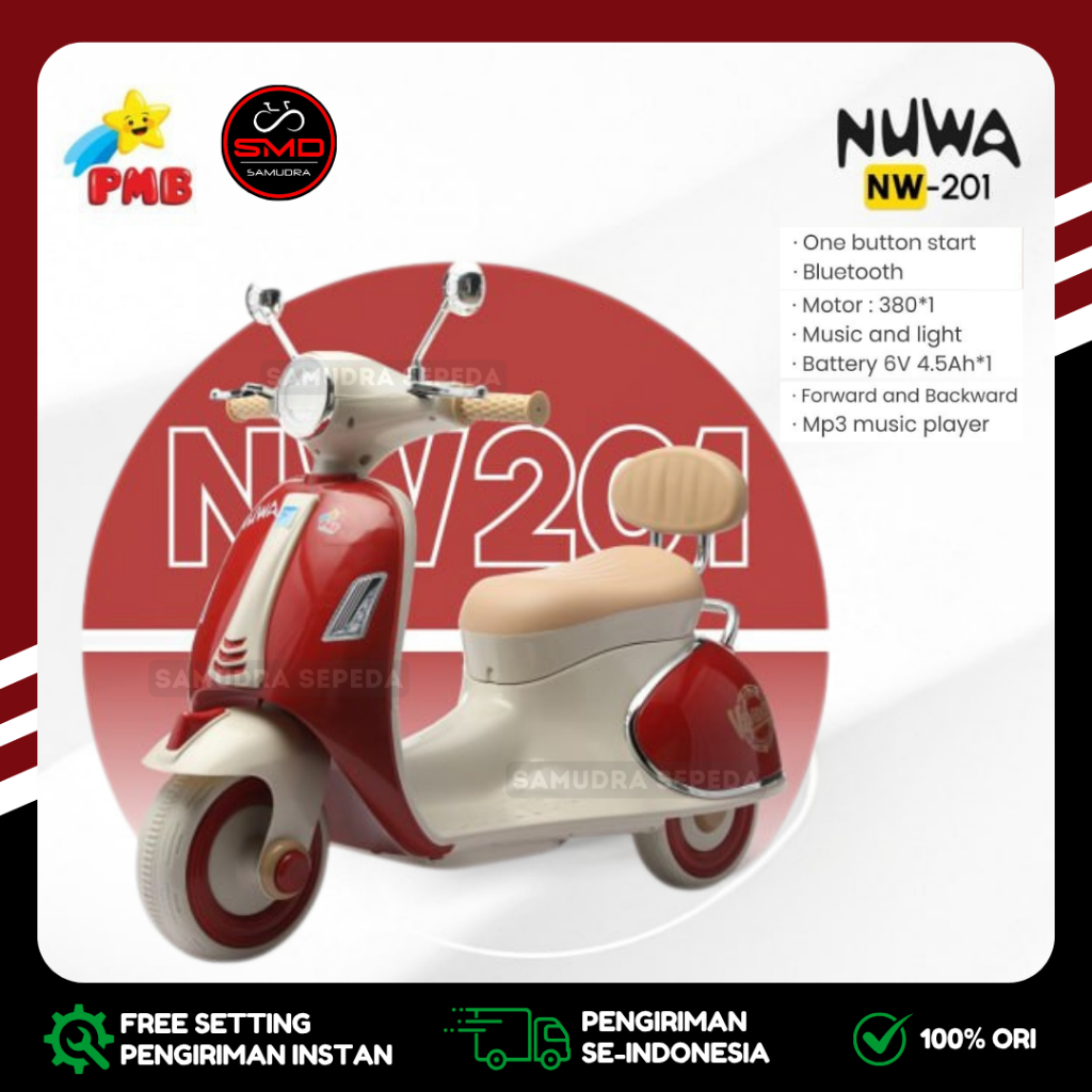 Motor Aki Mainan Anak Merk PMB NUWA 113 / 201 / Exotic EMT 2242 Vespa Mini Musik Box Murah BDG