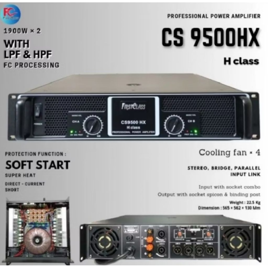 POWER AMPLIFIER FIRSTCLASS CS 9500 HX class H SOFT START PROFESIONAL