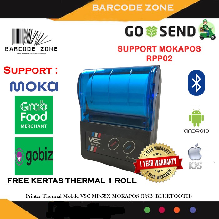 Printer Thermal Bluetooth Vsc Mp-58X Batera- Moka Qasir Mini Printer Kasir Ppob/Kasir