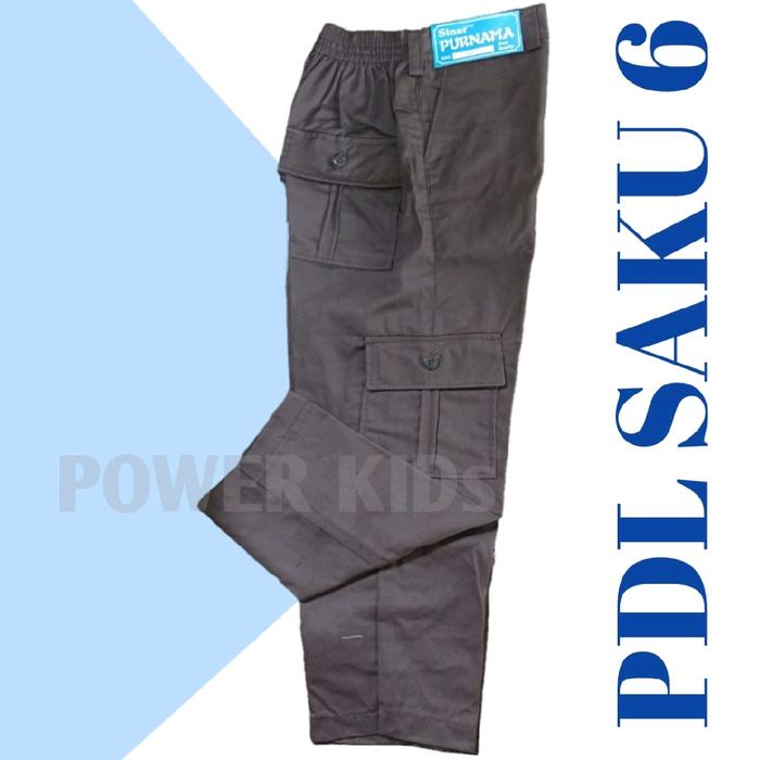 CELANA SERAGAM SEKOLAH SAKU ENAM PDL CARGO SD DAN SMP KARET PINGGANG - CELANA PANJANG SAKU 6 COKLAT, 21