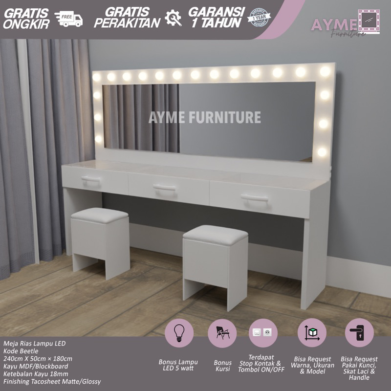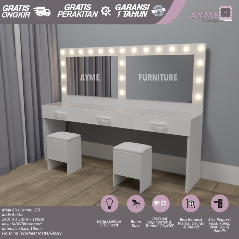 Meja Rias Makeup Lampu Double Beetle (Jabodetabek)