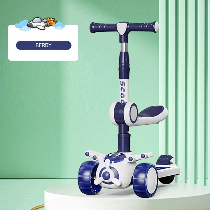 3 IN 1 Skuter Anak 3 Roda Otoped LED Model Pesawat / Scooter/ Skuter Otoped Musik Bangku Lampu Roda 3 punya rem/ skate b
