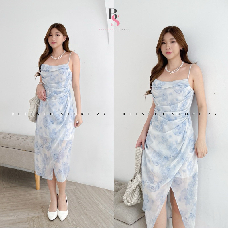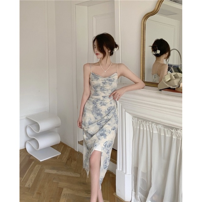 [Ada 3 Ukuran] D1059 Feodora Korean Style Floral Vintage Midi Dress Span Bodycon Sexy Spageti Tali Pantai Pesta Summer B