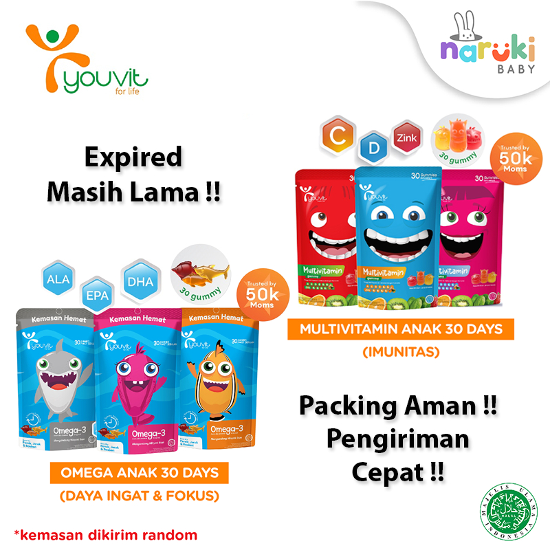 Youvit Multivitamin Anak Dan Omega3 Anak Isi 30 Gummies Untuk 30 Hari