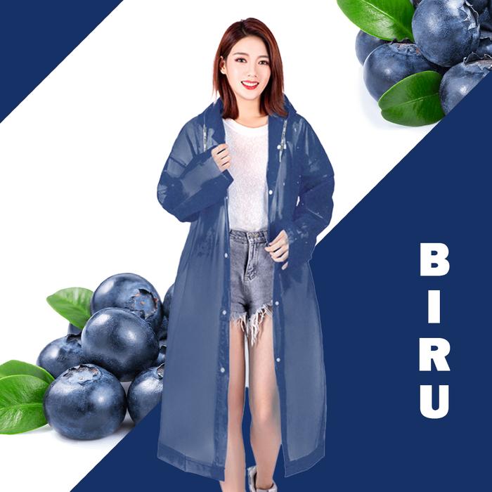 JAS HUJAN DEWASA PONCO KARAKTER HOODIE POLOS DILENGKAPI TALI DAN KANCING BAHAN EVA 81628 - BIRU