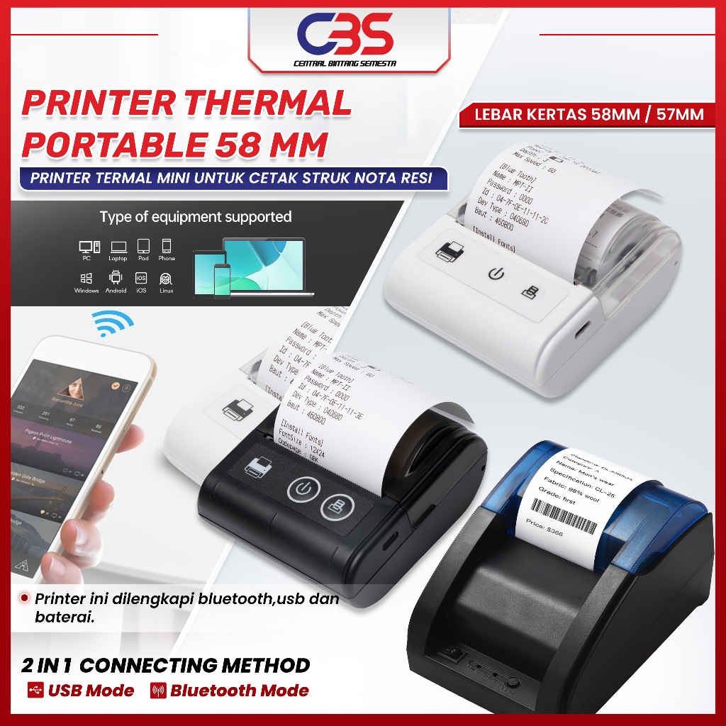 Printer Bluetooth Mini Printher Thermal 58Mm / 57Mm Pos Kasir Ppob Printer Termal