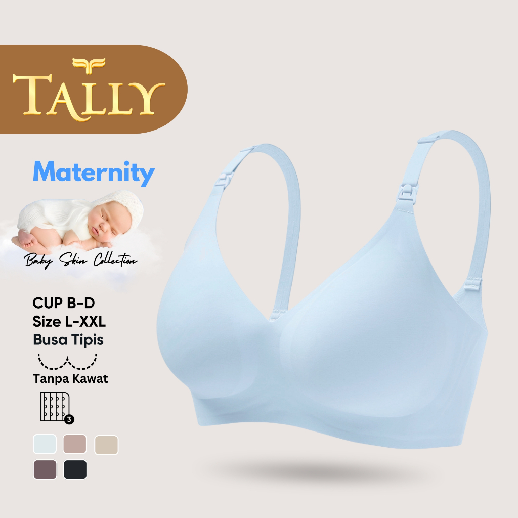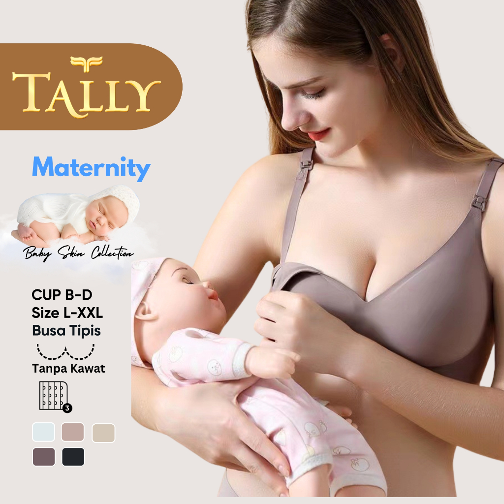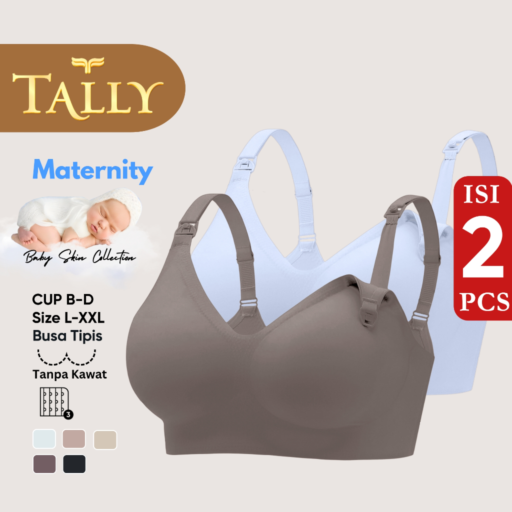 TALLY Paket 2 Pcs Bra Menyusui Tanpa Kawat Busa Tipis Bahan Nilon Seamless Baby Skin Cup B - D Kait 3 Bra Maternity BH 8