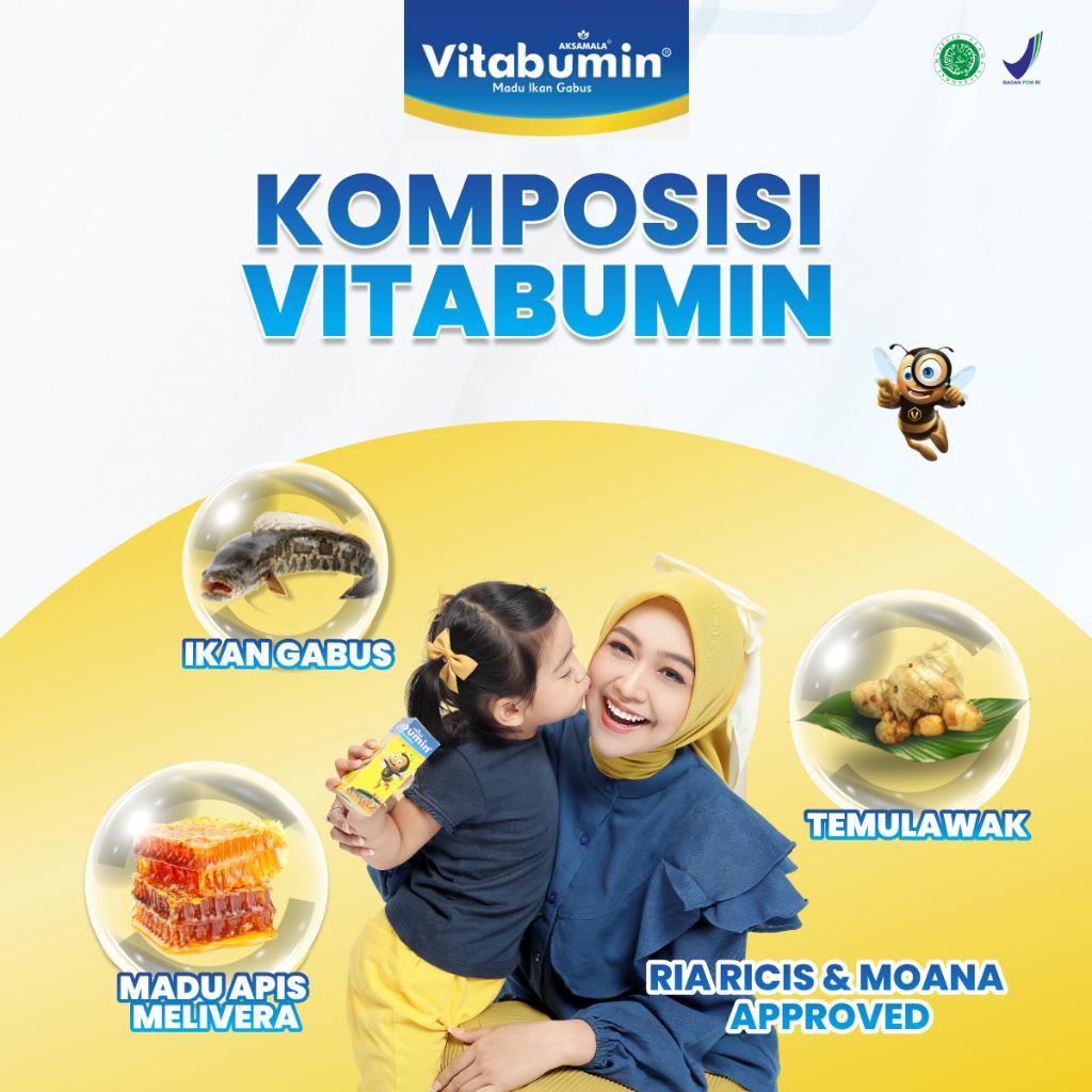 Paket 3 Botol Vitabumin 130Ml Madu Ikan Gabus Penambah Nafsu Makan Anak Original Bpom