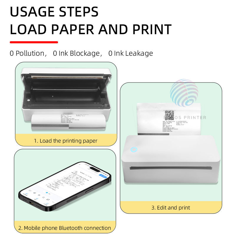 Gprinter Printer Thermal A4 Portable Bluetooth Wireless / Printer Tanpa Tinta Hvs / Inkless Thermal Printer Aimo M08Es