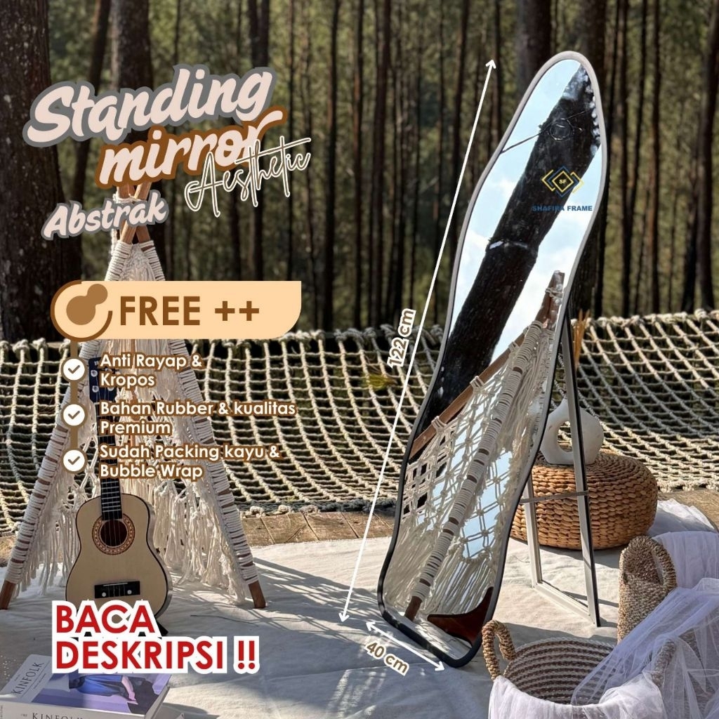 Standing Mirror Aesthetic Full Body Rubber Klasik,Abstrak 40X122 Premium (Wajib Baca Deskripsi)