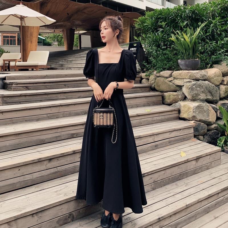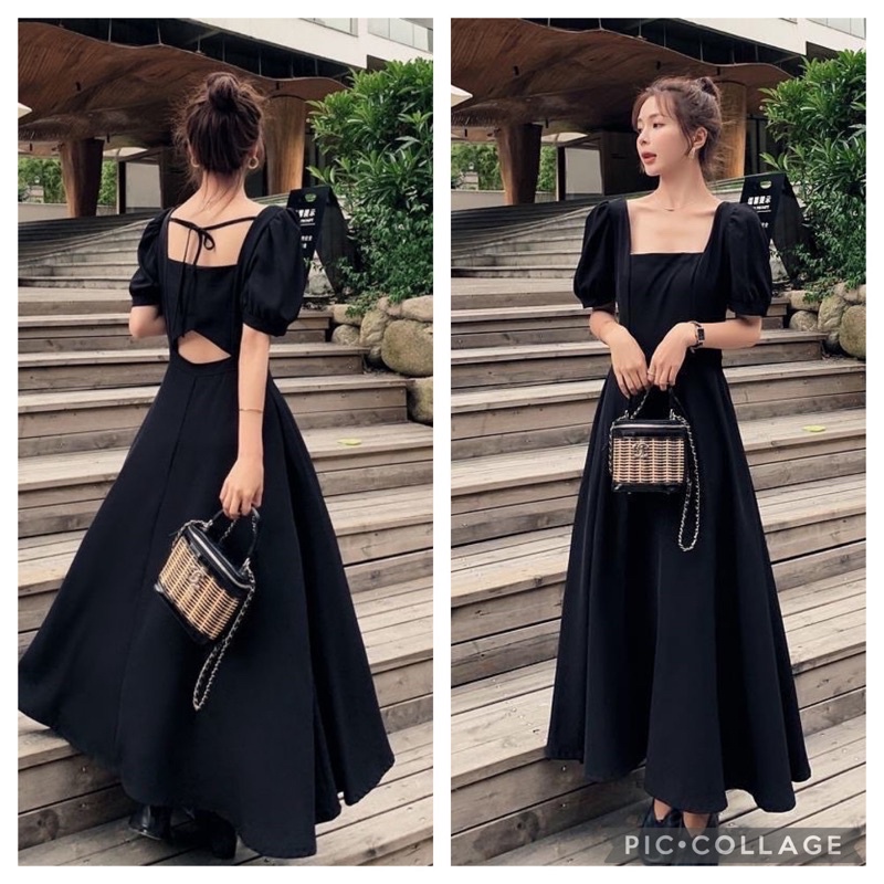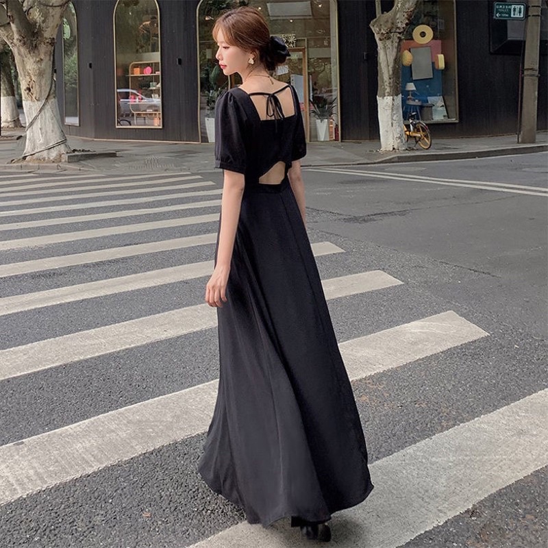 D157 - Korean Vintage Long Dress Dress Backless Square Neck Import / Dress Pantai Beach Dress / Gaun Wanita Murah Bergay