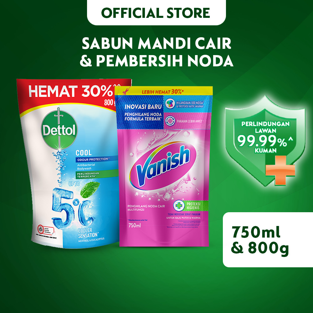 Dettol Sabun Mandi Cair Anti Bakteri Cool 800 Gr + Vanish Pink Cair 750Ml