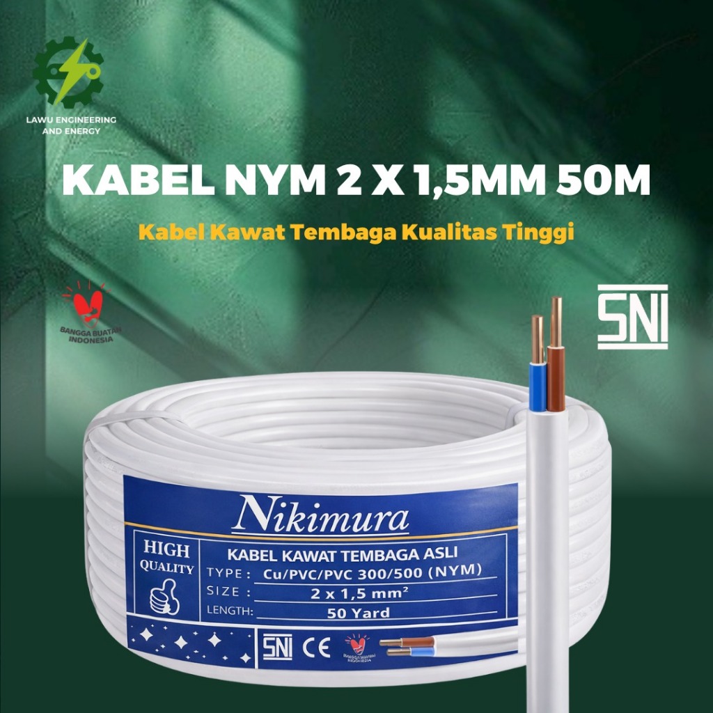 KABEL NYM 2x1.5M 50METER 50M Kabel Tembaga Kawat kualitas Tinggi