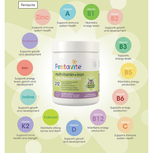 Pentavite Multivitamin + Iron Kids 60 Chewable Tablets Anak-Anak