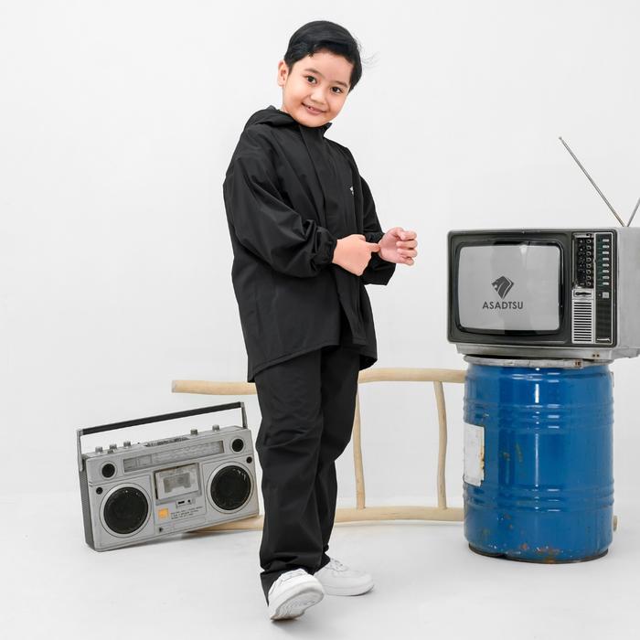 ASADTSU JAS HUJAN ANAK BAHAN IMPOR PVC TEBAL - HITAM, L