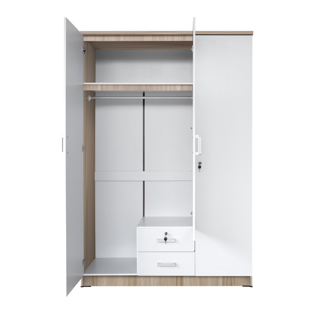 Kirana Arizona - Lemari Pakaian Kayu Wardrobe 3 Pintu Arizona Putih Coklat Modern Minimalis