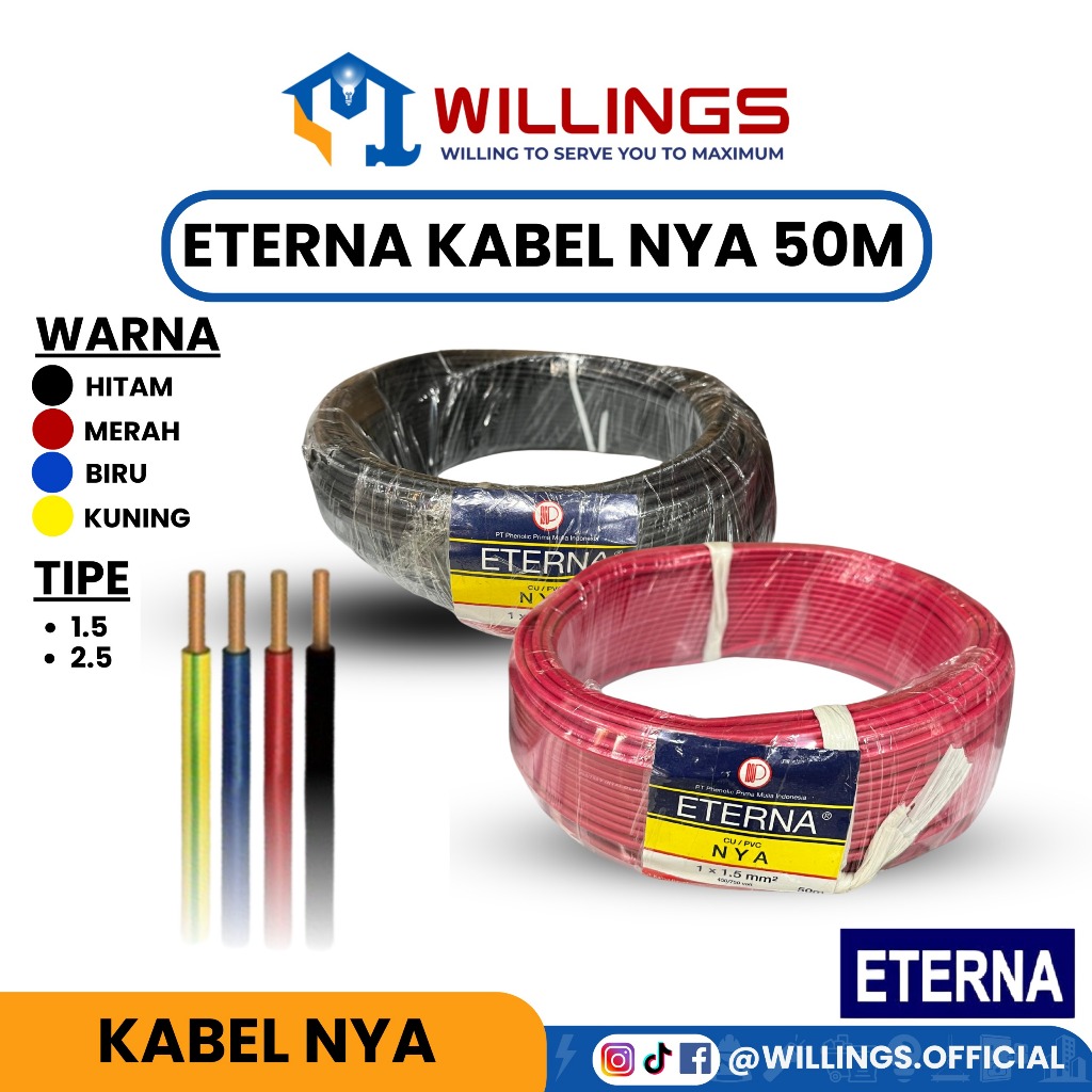 WILLINGS - ETERNA KABEL NYA 1,5 / 2,5 50 METER (50 M) LISTRIK TEMBAGA TUNGGAL