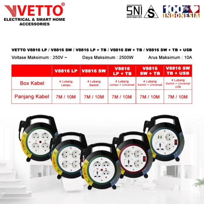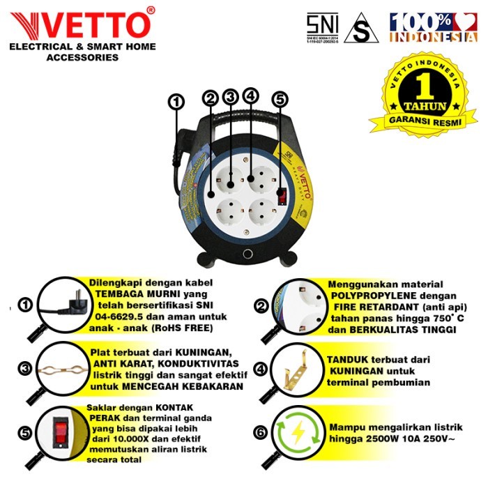 VETTO Kabel Roll V8816/7M SW - Box Kabel 7 Meter SNI