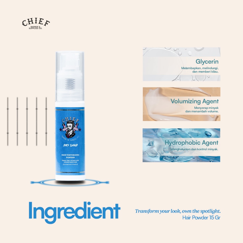 Chief Hair Powder 15 Gr – Volume Dan Natural Matte Finish – Volumizing Agent & Glycerin - Rambut Bedak Styling Pria