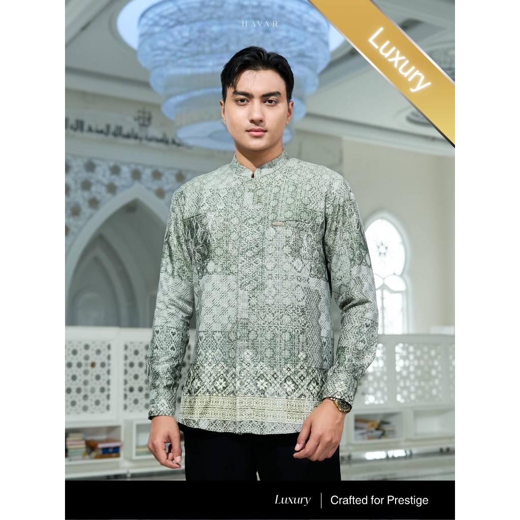 HAVAR Affan Green Kemeja Koko Muslim Premium Slimfit Lengan Panjang
